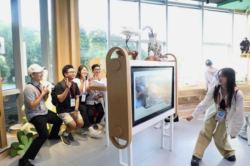在位于观山湖公园内的贵阳市观山湖区生态文明展览馆,青年代表们通过“生态文明的旗帜与引领”“贵州的生态文明践行之路”“人与自然和谐共生”3个篇章,详细了解了贵州省、贵阳市及观山湖区的生态文明建设成果。参观过程中,大家还体验了沉浸式展厅的魅力,纷纷与AR互动打卡拍照。“展馆很有趣,互动性很强,能感觉到本地居民的生活环境很舒服。”越南青年代表阮氏怀玱不禁感叹:“很想多来贵州旅游参观,亲眼看看展馆里介绍的稀有动物,还想去百花湖看风景、划船。”