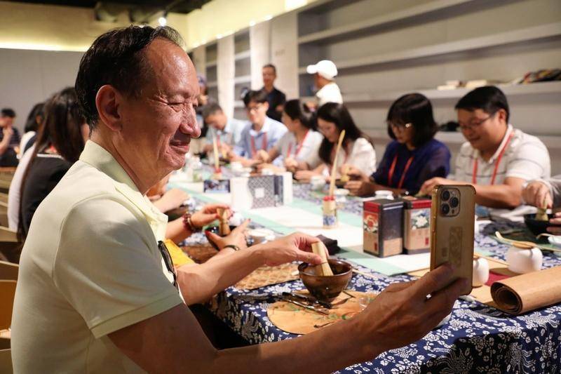 用手机记录抹茶制作过程。