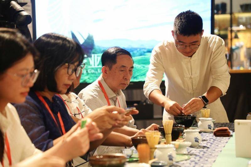 代表团听茶道老师讲解抹茶的制作过程。
