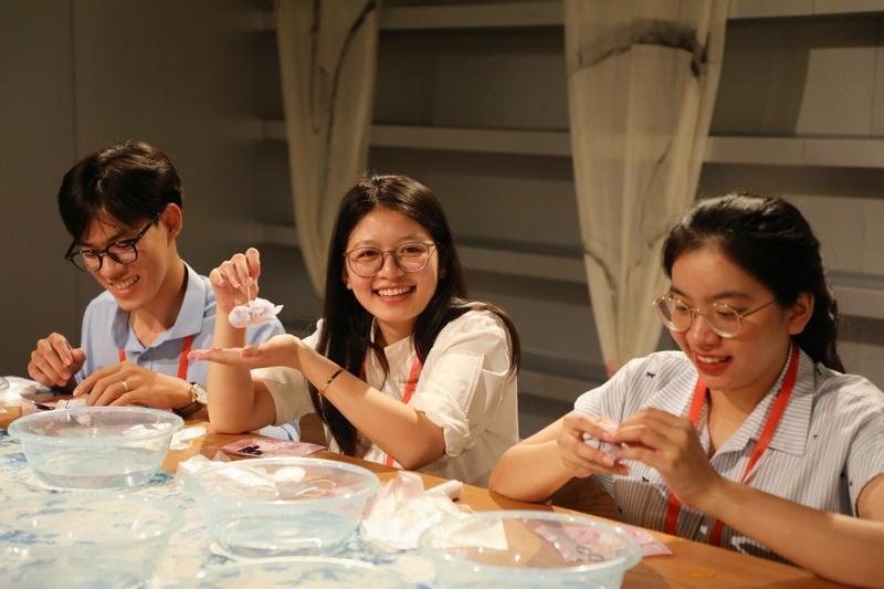 随后,代表团一行来到位于观山湖区的阿云朵仓,这里是一个集文化、艺术、生活于一体的城市先锋社区。代表团成员们先后体验了抹茶制作和非遗扎染,从中感受中华优秀传统文化的非凡魅力。来自越南的青年代表范如怀是第一次体验扎染,她兴奋地表示:“之前只在影视作品里看过扎染,今天是第一次亲手做,还是一幅独一无二的作品,感觉非常有意思!”